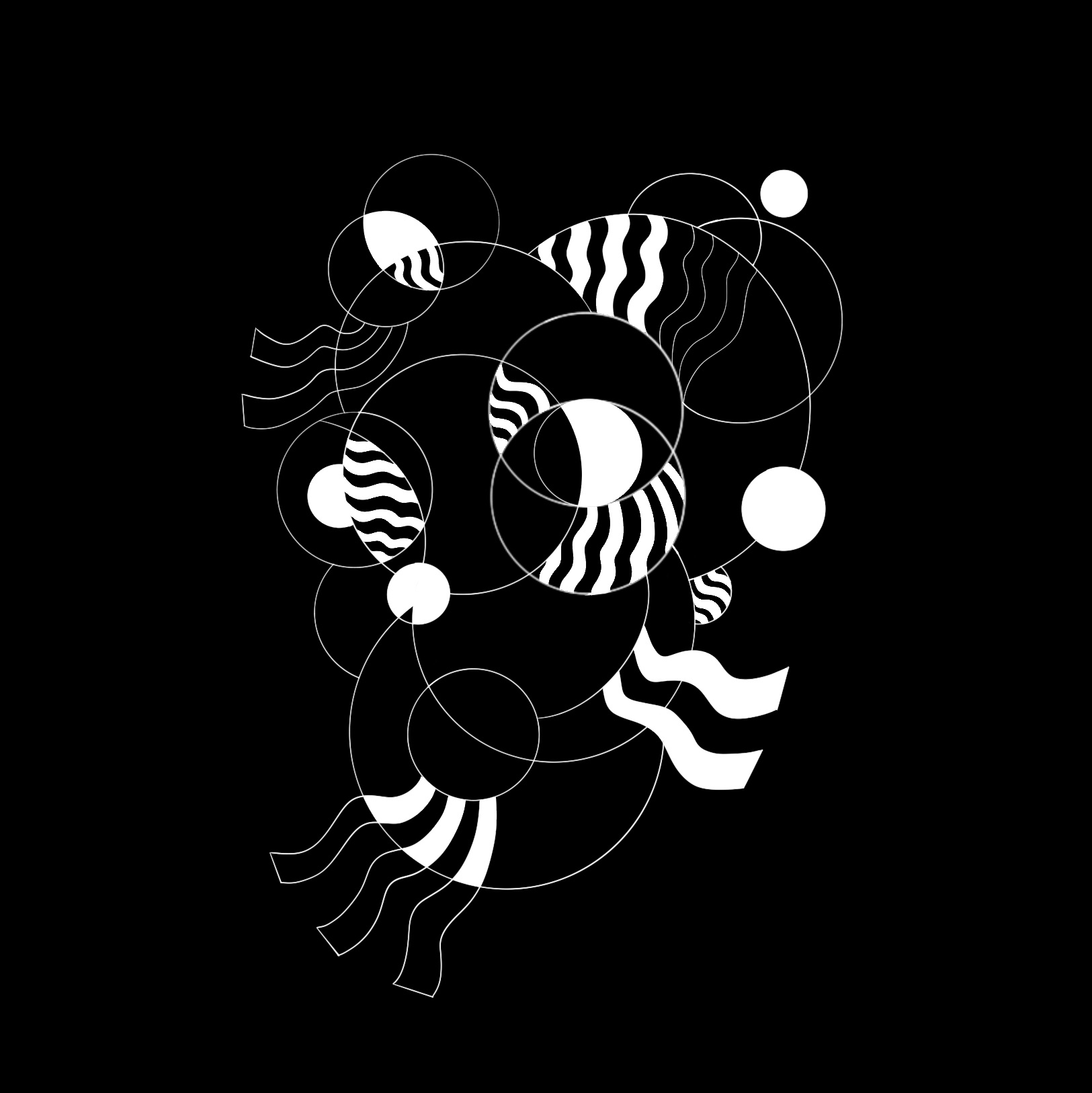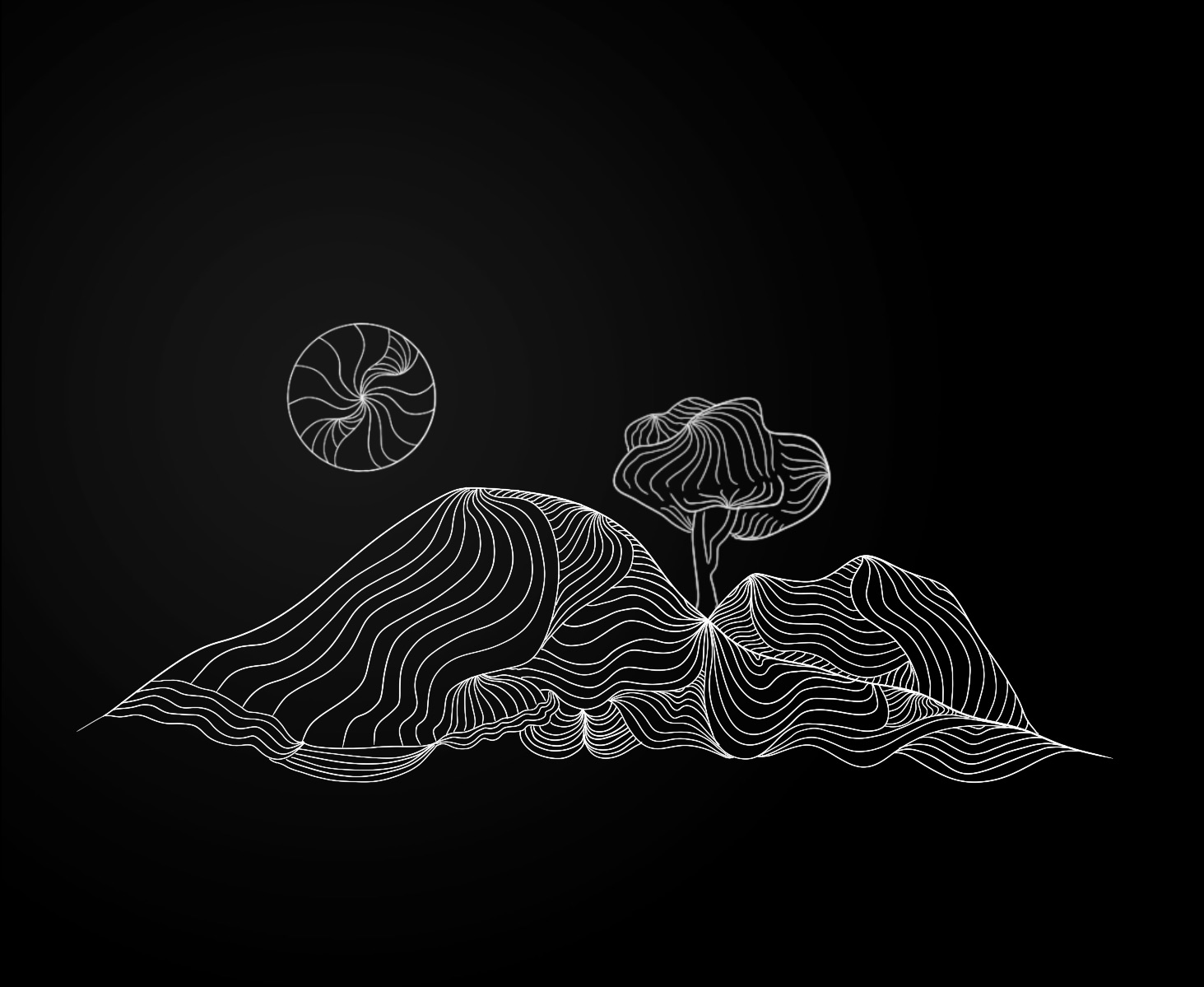 The painting of the moon and black shapes is an image that came to mind when listening to the song, Intro by the XX, while driving to work in Denver, CO in 2021.
