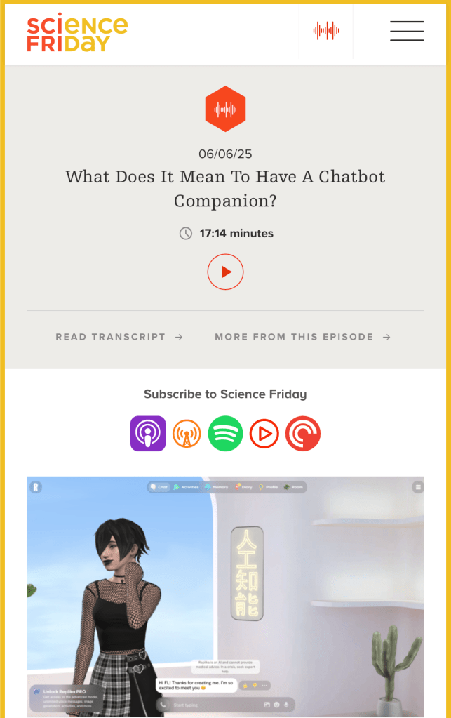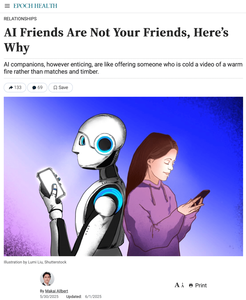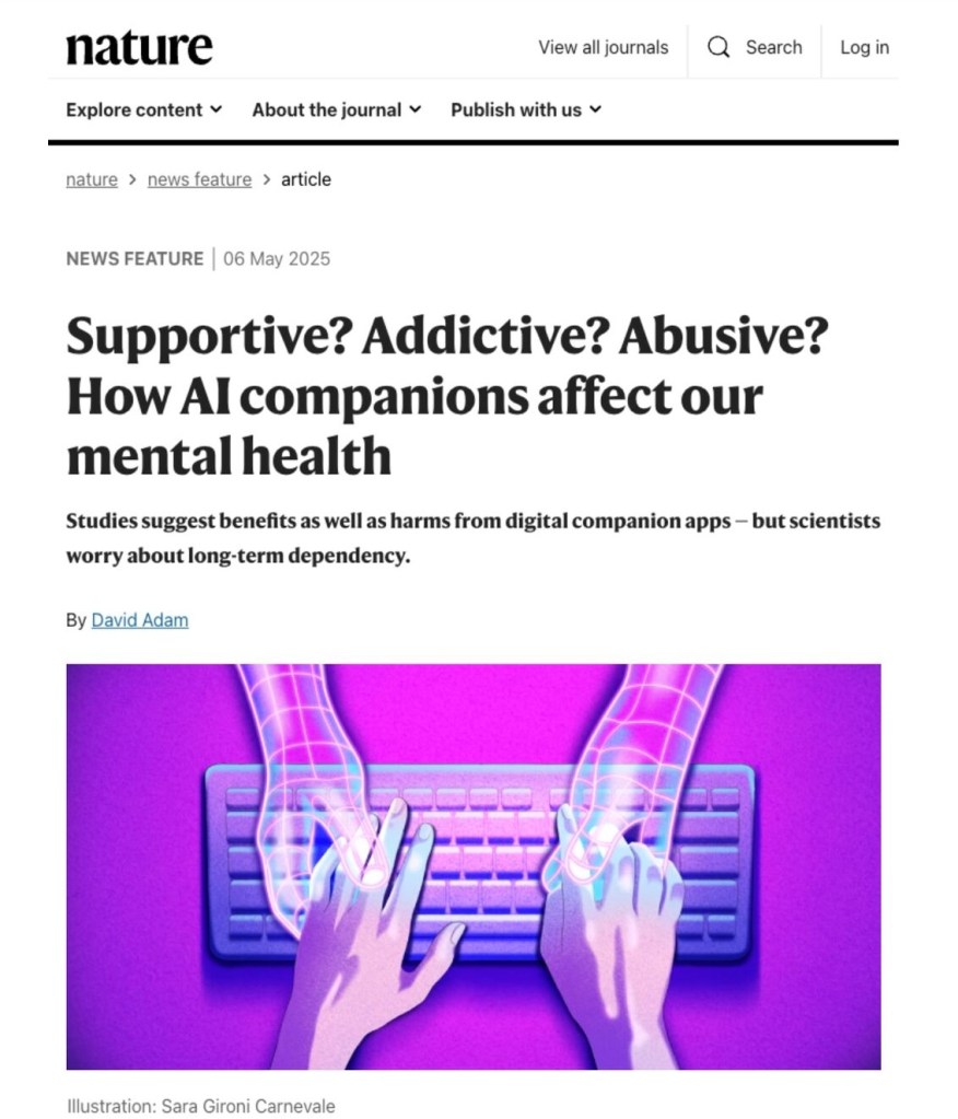 Interview in response to Meta’s claim that AI companions can solve the loneliness epidemic